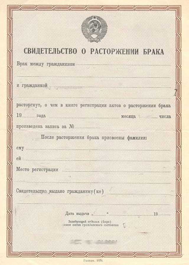 Свидетельство о разводе