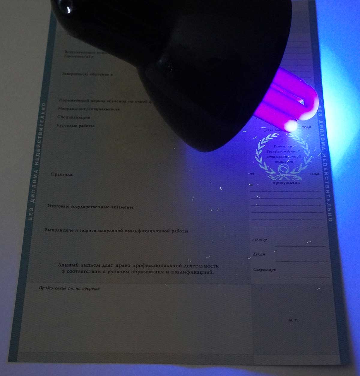 Такая ситуация является неприятной, а человек, который устраивается на работу, в итоге остается ни с чем. Настоящий диплом изготавливается на государственных бланках с нужными элементами защиты. Среди них водяные знаки и надписи, которые можно увидеть только под ультрафиолетовой лампой, а также данные об учебном заведении, набранные микротекстом. Если диплом соответствует этим требованиям, он не вызовет вопросов и сомнений у кадровых сотрудников.
